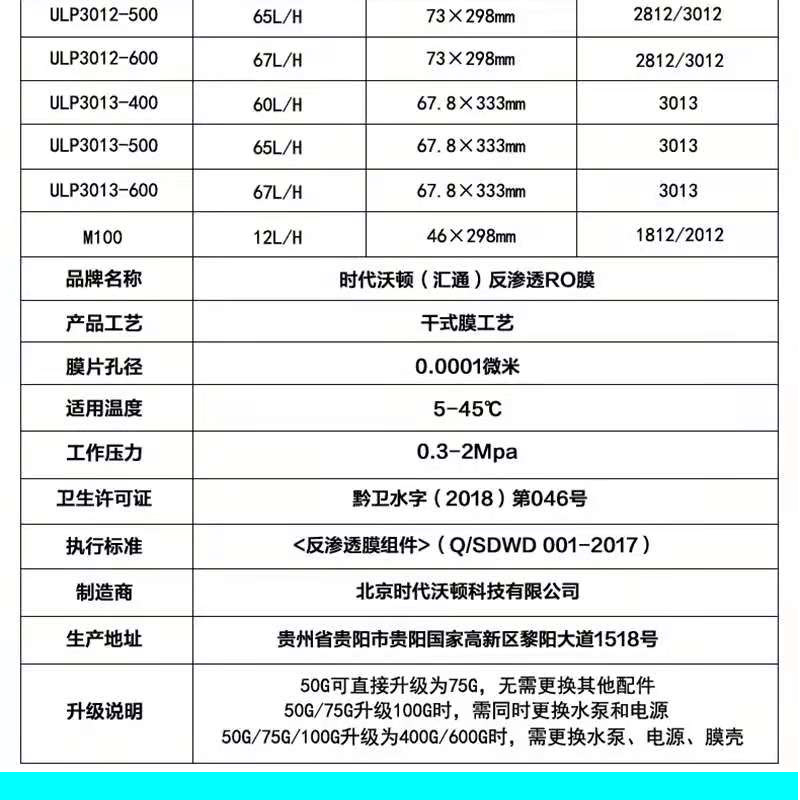 • 時代沃頓匯通RO膜3012/3013-400G 商用凈水器售水機通用反滲透濾芯